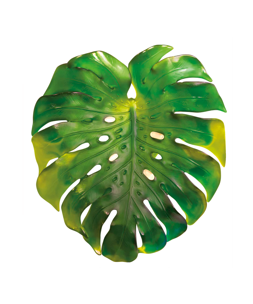 • Feuille Murale Monstera Daum en pâte de verre, réalisée en collaboration avec l’artiste Emilio Robba. Couleur verte, grand modèle. Édition numérotée.