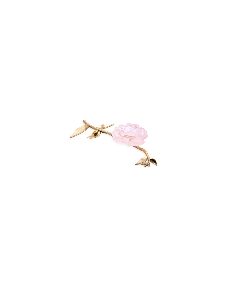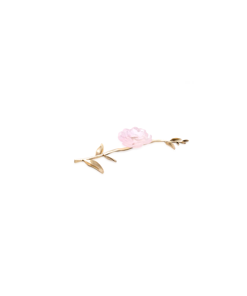 • Fleur d’apparat Camélia Daum en pâte de verre. Couleur rose, avec une tige en laiton poli patiné verni. Édition numérotée.