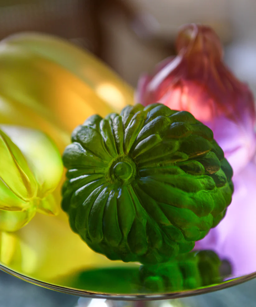 Cette « Sugar Apple » Daum, réalisée en collaboration avec l’artiste Gilles Neveu et limitée à 299 exemplaires dans le monde, évoque une invitation à la contemplation. Façonnée en pâte de verre, technique séculaire maîtrisée par Daum, elle révèle la lumière jouant sur les pétales de cristal et la douceur des formes organiques. Ses jeux de lumière et de transparence subliment la pureté de la nature sublimée, créant une aura fascinante. Chaque détail témoigne d’un savoir-faire d’exception et d’une passion pour la création. Une œuvre poétique et intemporelle, où l’art et la nature s’unissent. Signature unique de la prestigieuse cristallerie Daum depuis 1878. Édition limitée à 299 exemplaires.