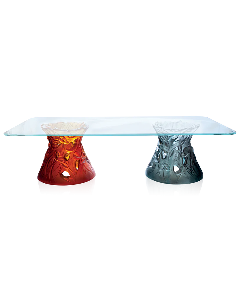 Table Basse Végétale Daum – Ambre & Gris Bleu – Grand Modèle