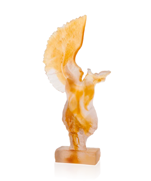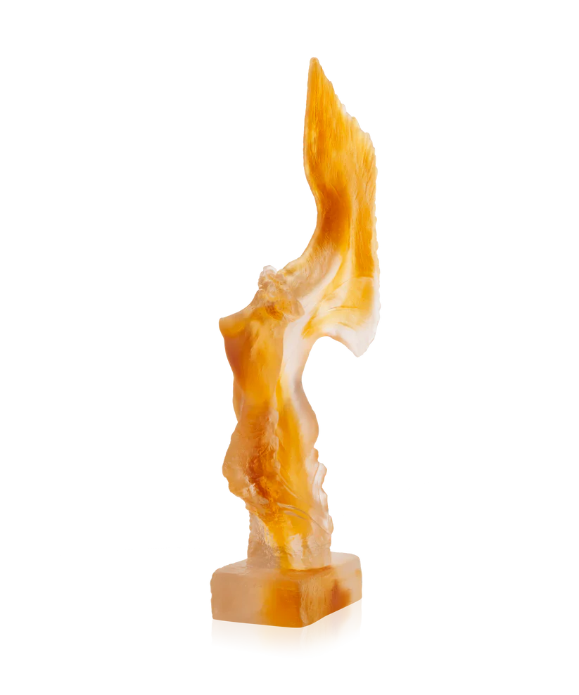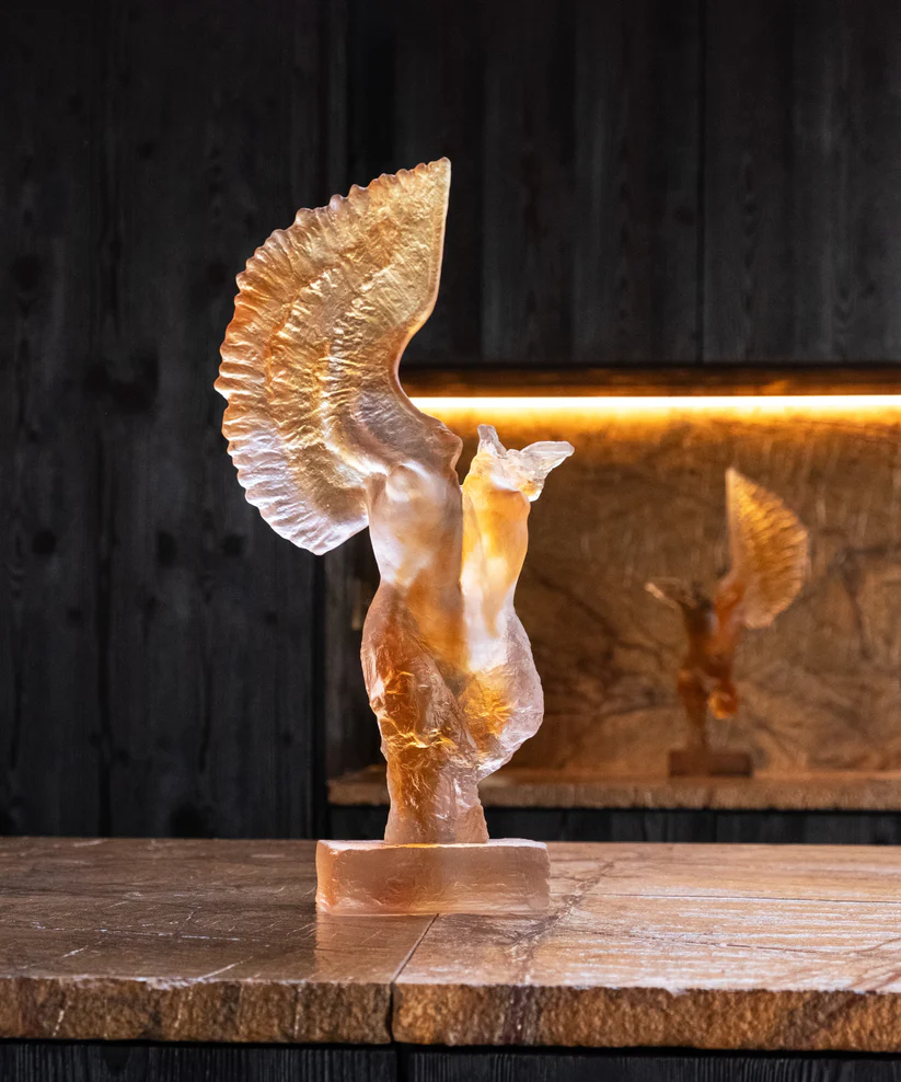 « L’Alcyone » de Daum, réalisé en collaboration avec l’artiste Dominique Vial et limité à 99 exemplaires dans le monde, évoque la maîtrise du geste artisanal. Façonné en pâte de verre, technique séculaire maîtrisée par Daum, il révèle la transparence comme langage universel et l’harmonie entre lumière et matière. Ses jeux de lumière et de transparence subliment la rencontre du savoir-faire et de l’émotion, créant une aura fascinante. Chaque détail témoigne d’un savoir-faire d’exception et d’une passion pour la création. Une œuvre poétique et intemporelle, où l’art et la nature s’unissent. Signature unique de la prestigieuse cristallerie Daum depuis 1878. Édition limitée à 99 exemplaires.