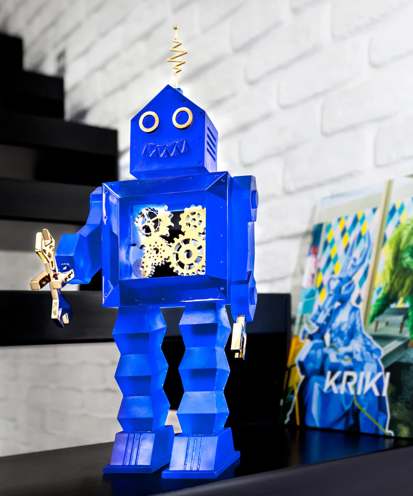 « Daumot 163 » de Daum, réalisé en collaboration avec l’artiste Kriki et inspiré de son univers fantastique, se dresse élégamment, évoquant un mouvement éternel. Son allure imposante est sublimée par la pâte de verre, technique séculaire maîtrisée par Daum, qui donne vie au cristal. Ses formes généreuses captent les éclats de lumière, créant des transparences colorées qui rappellent les jeux de lumière naturelle d’une aube estivale. Cette œuvre d’art ajoutera une présence magnétique à votre intérieur, invitant à la contemplation et à l’admiration de son savoir-faire exceptionnel. Création unique de la prestigieuse cristallerie Daum. Édition limitée à 99 exemplaires.