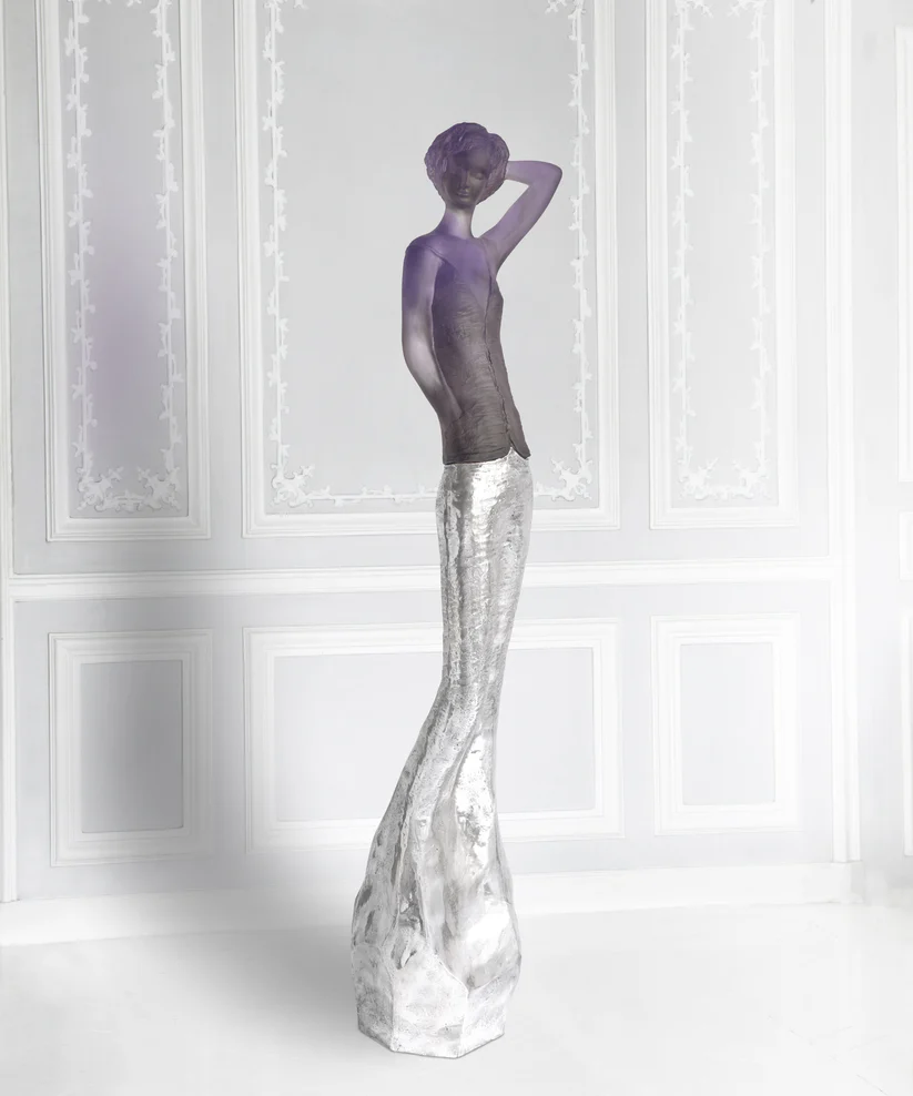 • « Inès » Daum en pâte de verre, réalisée en collaboration avec l’artiste Jean-Philippe Richard. Couleur grise violette & argent. Édition limitée à 75 exemplaires.
