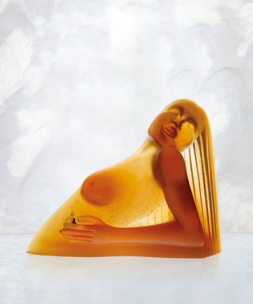 Le Soleil de Daum, réalisée en collaboration avec l’artiste Dan Dailey et inspirée par l’éclat du soleil et la beauté féminine, est une sculpture qui capture la lumière naturelle dans une danse éblouissante. Façonnée en pâte de verre, technique séculaire maîtrisée par Daum, la Maison a créé une œuvre qui évoque les saisons et l’éternel cycle de la vie avec des nuances subtilement colorées, donnant vie à la cristalline. La maîtrise artisanale de Daum est mise en valeur dans chaque détail délicat, chaque courbe élancée, chaque expression saisissante du visage féminin. Cette sculpture imposante apporte une présence magnétique à tout espace, invitante et inspirante, elle est une véritable invitation à la contemplation. Création unique de la prestigieuse cristallerie Daum. Édition limitée à 195 exemplaires.