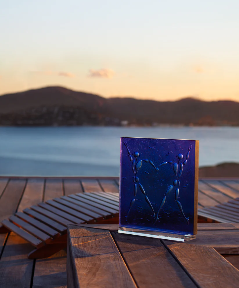 • « Love Dance » Daum en pâte de verre, réalisée en collaboration avec l’artiste Jérôme Mesnager. Couleur bleue. Édition limitée à 8 exemplaires.