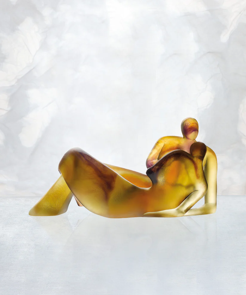 « Lune de Miel » de Daum, réalisée en collaboration avec l’artiste Natacha Mondon et inspirée par la tendresse d’un amour éternel, évoque une danse intemporelle. Façonnée en pâte de verre, technique séculaire maîtrisée par Daum, les nuances d’ambre et de rose se jouent de la lumière, donnant vie à cette sculpture élancée en pâte de verre, fruit d’un savoir-faire séculaire. La maîtrise artisanale de Daum donne naissance à une expression saisissante, un mouvement figé dans le temps, une présence magnétique. Cette sculpture apporte une touche de beauté et d’élégance à votre espace, invitant à la contemplation et à la célébration de l’amour. Création unique de la prestigieuse cristallerie Daum. Édition limitée à 275 exemplaires.