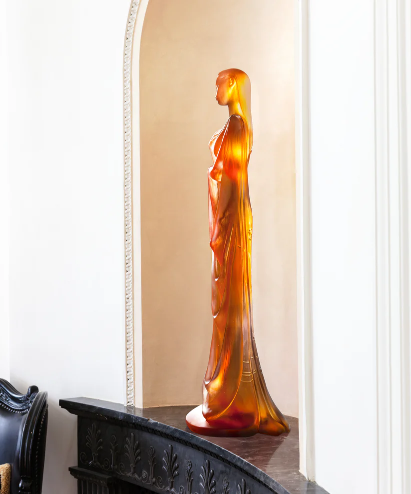 Lys d’Eau de Daum, réalisée en collaboration avec l’artiste Marie-Paule Deville-Chabrolle et inspirée de la délicatesse et de la beauté des lys d’eau, évoque une présence féminine, puissante et gracieuse. Façonnée en pâte de verre, technique séculaire maîtrisée par Daum, elle capture la lumière naturelle, joue avec les transparences et offre un spectacle d’éclats de couleur vivifiants. Chaque détail, chaque courbe est le fruit d’une technique séculaire, rendant cette œuvre unique et raffinée. La « Lys d’Eau » de Marie-Paule Deville Chabrolle, imposante et élégante, invite à une contemplation silencieuse, une véritable ode à la beauté éternelle de la nature, et à la maîtrise artisanale sans pareil de la prestigieuse cristallerie Daum depuis 1878. Édition limitée à 125 exemplaires.