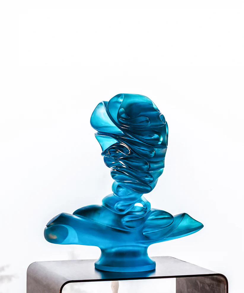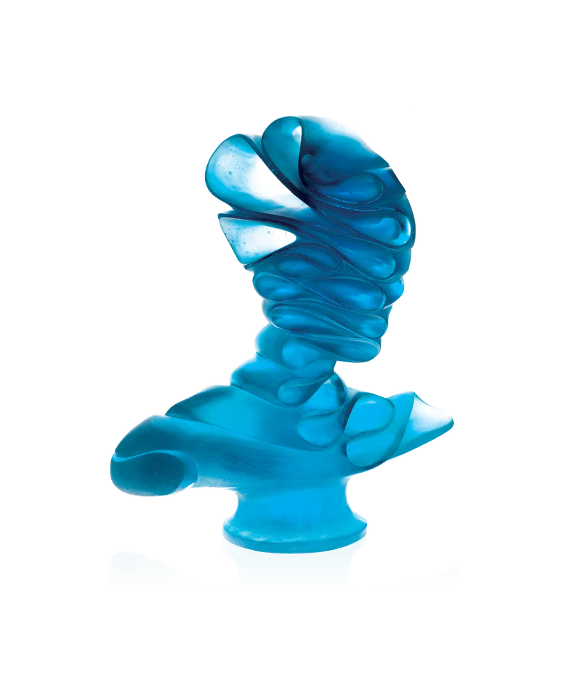 Ce « Masque de Verre » Daum en bleu, réalisé en collaboration avec l’artiste Jean Faucheur et limité à 275 exemplaires dans le monde, évoque la rencontre du savoir-faire et de l’émotion. Façonné en pâte de verre, technique séculaire maîtrisée par Daum, il révèle la transparence comme langage universel et un symbole d’élégance intemporelle. Ses jeux de lumière et de transparence subliment l’harmonie entre lumière et matière, créant une aura fascinante. Chaque détail témoigne d’un savoir-faire d’exception et d’une passion pour la création. Une œuvre poétique et intemporelle signée, où l’art et la nature s’unissent. Signature de la prestigieuse cristallerie Daum depuis 1878. Édition limitée à 275 exemplaires.