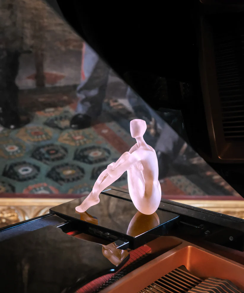 « Méditation » de Daum, réalisée en collaboration avec l’artiste Sylvie Mangaud et limitée à 375 exemplaires dans le monde, évoque la beauté pure du cristal. Façonnée en pâte de verre, technique séculaire maîtrisée par Daum, elle révèle la maîtrise du geste artisanal et la rencontre du savoir-faire et de l’émotion. Ses jeux de lumière et de transparence subliment la transparence comme langage universel, créant une aura fascinante. Chaque détail témoigne d’un savoir-faire d’exception et d’une passion pour la création. Une œuvre poétique et intemporelle, où l’art et la nature s’unissent. Signature de la prestigieuse cristallerie Daum. Édition limitée à 375 exemplaires.