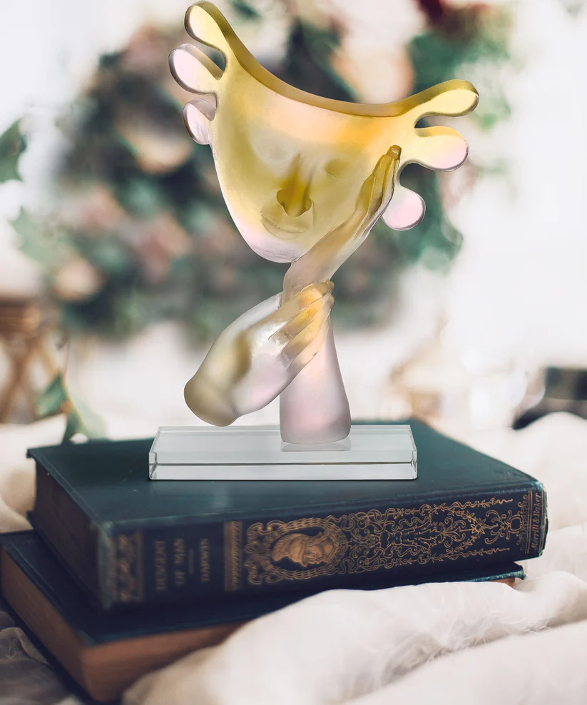 Cette sculpture « Pensée d’Amour » de Daum, réalisée en collaboration avec l’artiste Étienne et inspirée par le souffle délicat de l’amour, suggère une pensée intime et éternelle. Façonnée en pâte de verre, technique séculaire maîtrisée par Daum, elle déploie un éclat de lumière, fruit du savoir-faire technique séculaire de Daum. Les détails minutieux et la maîtrise artisanale de la pâte de verre confèrent à cette œuvre une expression saisissante. Dans votre espace, elle se fait présence magnétique, invitant à une contemplation sereine et raffinée de l’émotion cristallisée. Création unique de la prestigieuse cristallerie Daum. Édition limitée à 375 exemplaires.