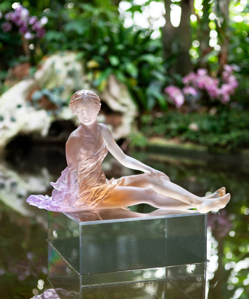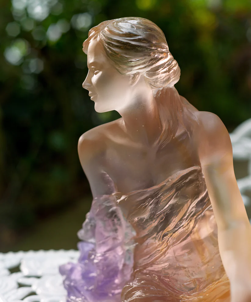 Le « Vent Léger » de Daum, réalisé en collaboration avec l’artiste Luo Li Rong et limité à 75 exemplaires dans le monde, évoque la maîtrise du geste artisanal. Façonné en pâte de verre, technique séculaire maîtrisée par Daum, il révèle la rencontre du savoir-faire et de l’émotion et un symbole d’élégance intemporelle. Ses jeux de lumière et de transparence subliment l’harmonie entre lumière et matière, créant une aura fascinante. Chaque détail témoigne d’un savoir-faire d’exception et d’une passion pour la création. Une œuvre poétique et intemporelle, où l’art et la nature s’unissent. Signature de la prestigieuse cristallerie Daum depuis 1878. Édition limitée à 75 exemplaires.
