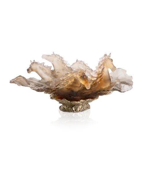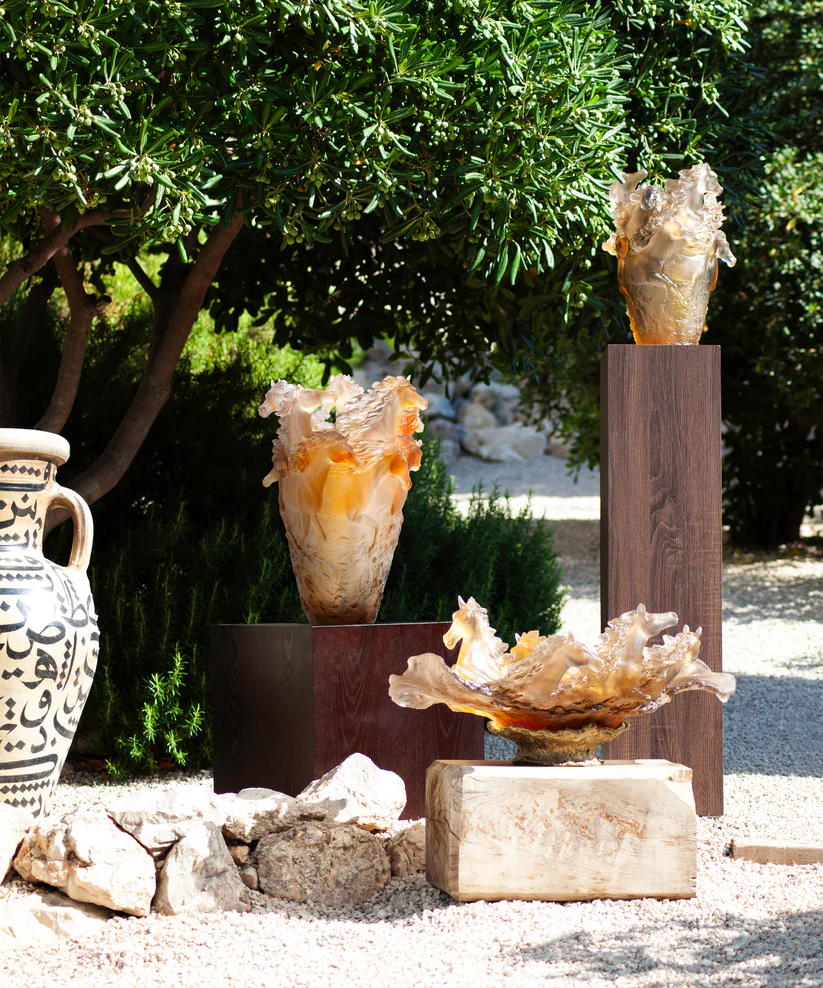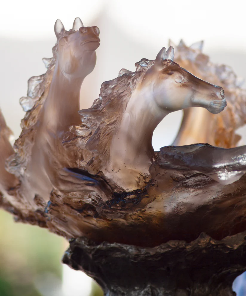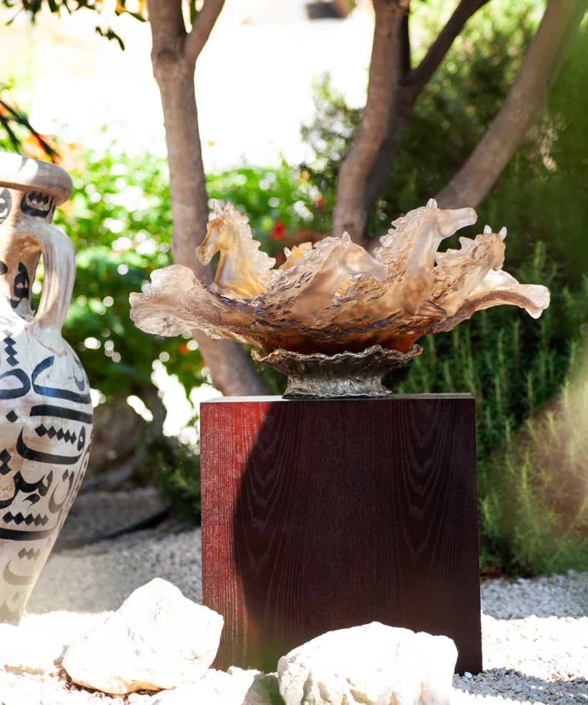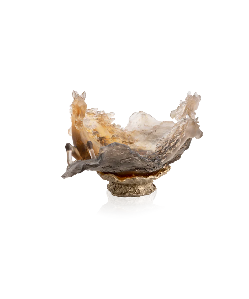 Ce centre de table Daum, issu de la collection Cavalcade, évoque la puissance du monde sauvage. Façonné en pâte de verre, technique séculaire maîtrisée par Daum, il révèle une énergie captivante et la lumière qui caresse la matière. Ses jeux de lumière et de transparence subliment le souffle de la nature, créant une aura fascinante. Chaque détail témoigne d’un savoir-faire d’exception et d’une passion pour la création. Une œuvre poétique et intemporelle, où l’art et la nature s’unissent. Signature unique de la prestigieuse cristallerie Daum depuis 1878. Édition limitée à 125 exemplaires.