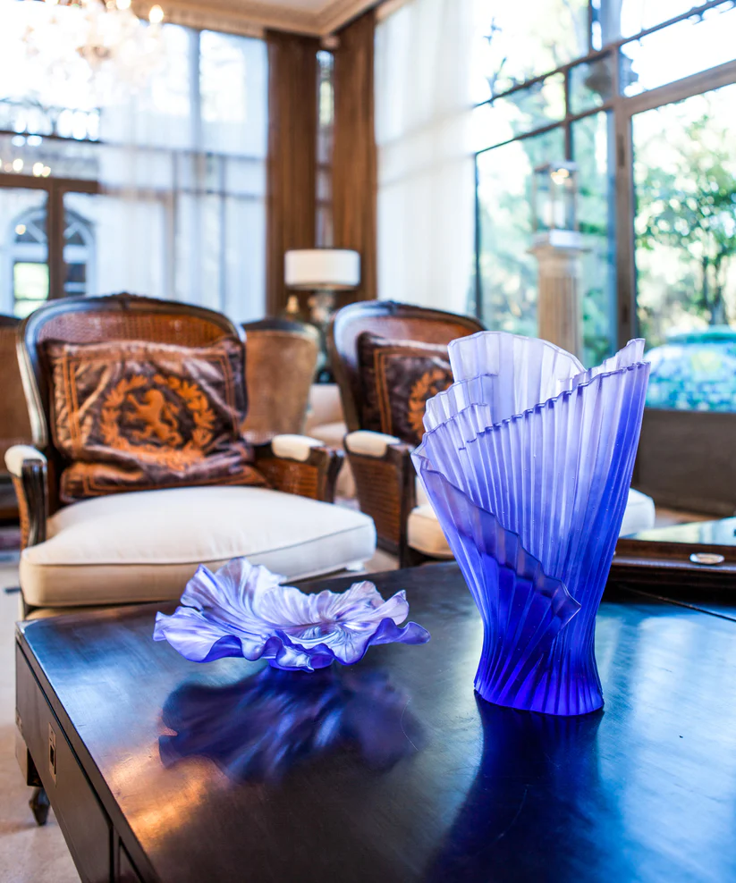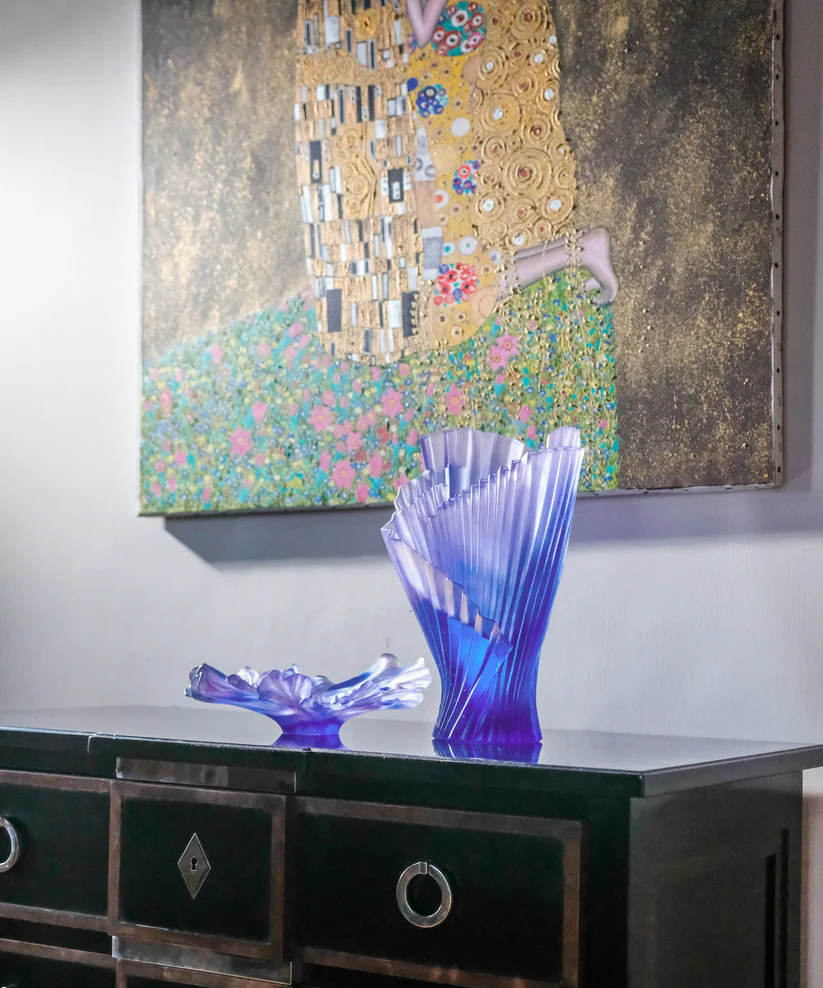 Cette coupe Daum, issue de la collection Croisière, évoque le murmure des fleurs. Façonnée en pâte de verre, technique séculaire maîtrisée par Daum, elle révèle la pureté de la nature sublimée et la lumière jouant sur les pétales de cristal. Ses jeux de lumière et de transparence subliment l’éclat des feuillages cristallins, créant une aura fascinante. Chaque détail témoigne d’un savoir-faire d’exception et d’une passion pour la création. Une œuvre poétique et intemporelle, où l’art et la nature s’unissent. Signature unique de la prestigieuse cristallerie Daum depuis 1878. Édition numérotée.