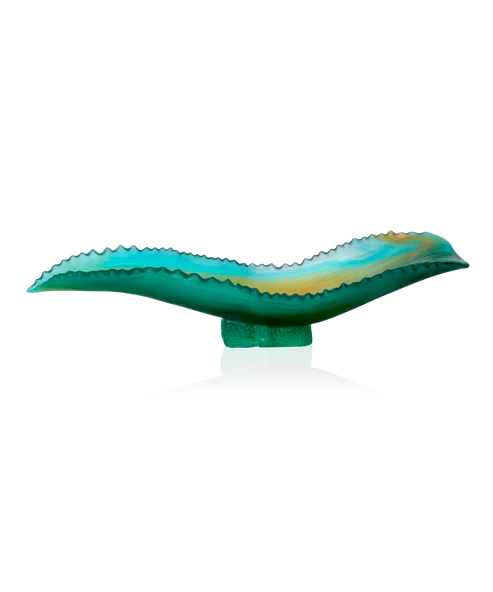 Cette « Coupe Feuille Agave » Daum, issue de la collection Jardin de Cactus réalisée en collaboration avec l’artiste Emilio Robba et inspirée des jardins exotiques, évoque la beauté sauvage des cactus. Façonnée en pâte de verre, technique séculaire maîtrisée par Daum, l’œuvre capture des éclats de lumière dans ses transparences colorées. Le vert luxuriant se mêle à la délicatesse du cristal, offrant un spectacle visuel d’une élégance rare. Placée dans votre espace de vie, cette coupe devient une invitation à la contemplation, un hymne à la nature sublimée par le savoir-faire artisanal de la prestigieuse cristallerie Daum depuis 1878. Édition numérotée.