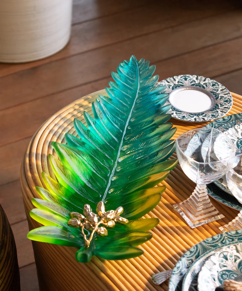 • Coupe Feuille Palm Beach Daum en pâte de verre, réalisée en collaboration avec l’artiste Emilio Robba. Grand modèle. Édition limitée à 225 exemplaires.