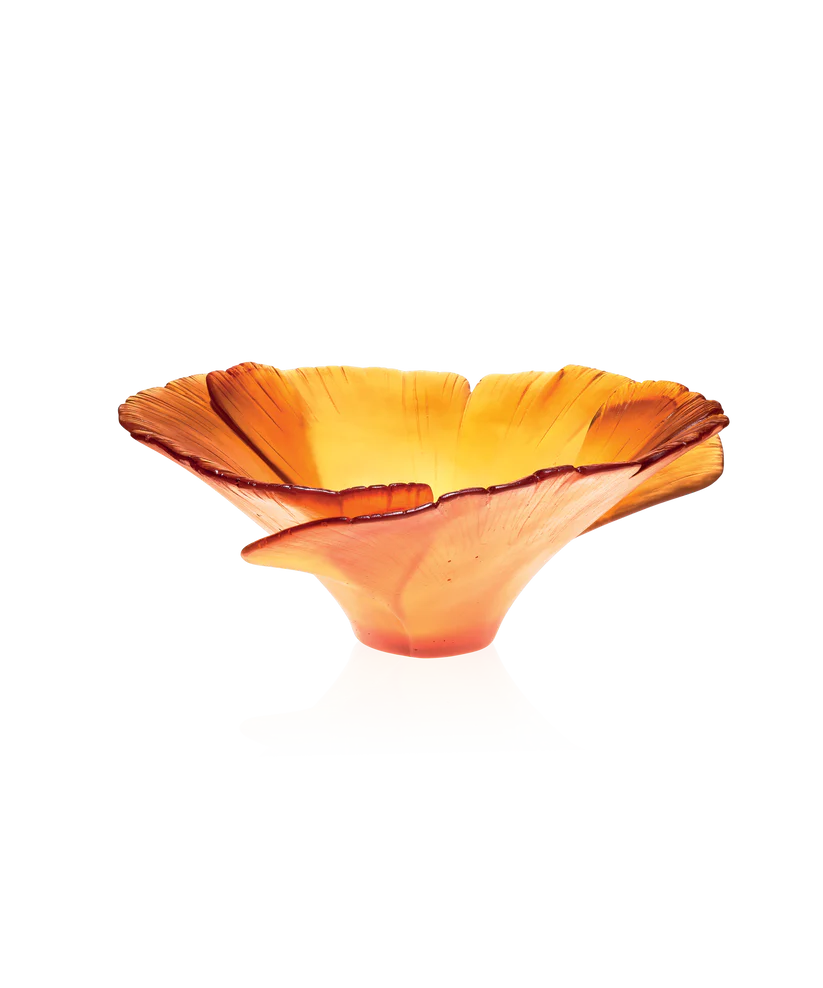 • Coupe Haute Ginkgo Daum en pâte de verre. Couleur ambre. Édition numérotée.