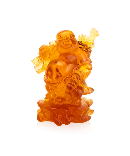 • « Bouddha Debout » Daum en pâte de verre. Couleur ambre.