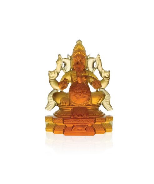 Cette sculpture « Ganesh » de Daum, limitée à 888 exemplaires dans le monde, évoque la maîtrise du geste artisanal. Façonnée en pâte de verre, technique séculaire maîtrisée par Daum, elle révèle la rencontre du savoir-faire et de l’émotion et la transparence comme langage universel. Ses jeux de lumière et de transparence subliment l’harmonie entre lumière et matière, créant une aura fascinante. Chaque détail témoigne d’un savoir-faire d’exception et d’une passion pour la création. Une œuvre poétique et intemporelle, où l’art et la nature s’unissent. Signature unique de la prestigieuse cristallerie Daum depuis 1878. Édition limitée à 888 exemplaires.