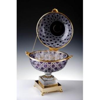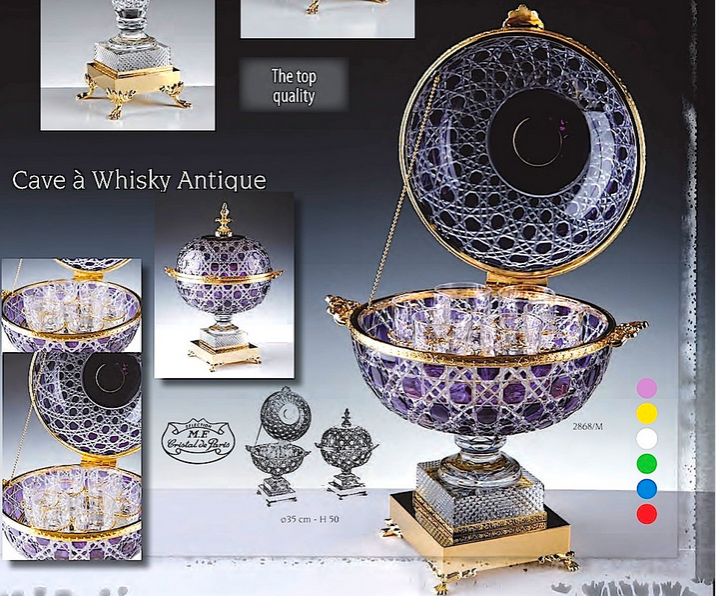 Très belle Cave à Whisky en cristal 24% plomb et bronze incrusté Or 24 carats.