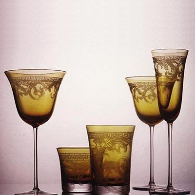 Collections de verres arabesque de couleur ambre en cristal Versace.