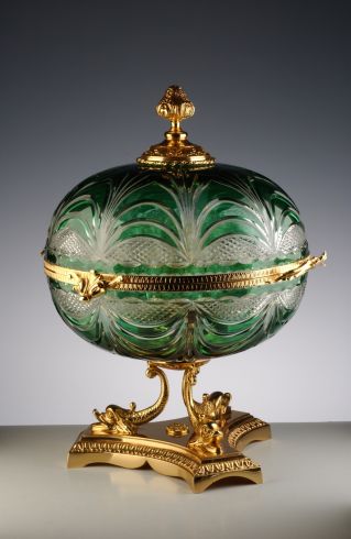 Très belle Cave à Whisky en cristal 24% plomb et bronze incrusté Or 24 carats.