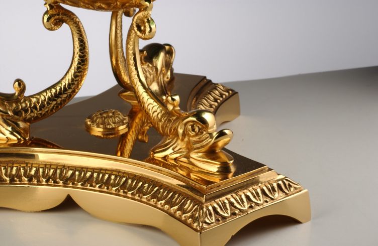 -support avec miroir rond et bronze incrusté or 24 carats (pièce pouvant être sortit de la cave)