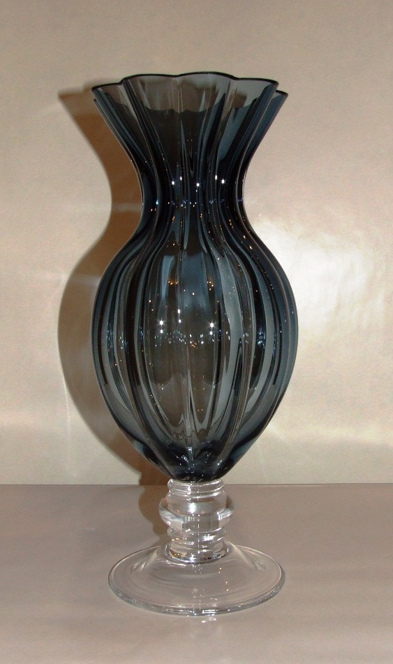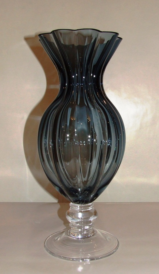 Vase en cristal uni de forme Chambord sur pied transparent.