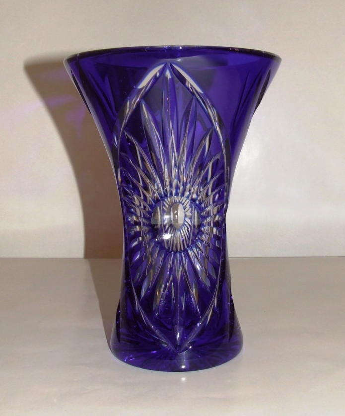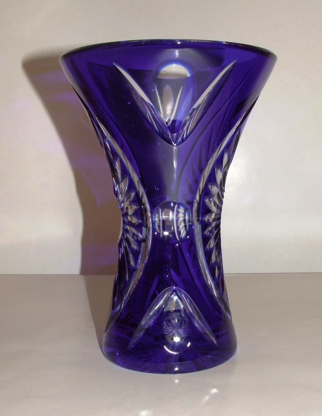 Vase en cristal 24% plomb de couleur bleu teinté dans la masse.