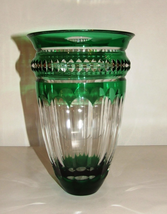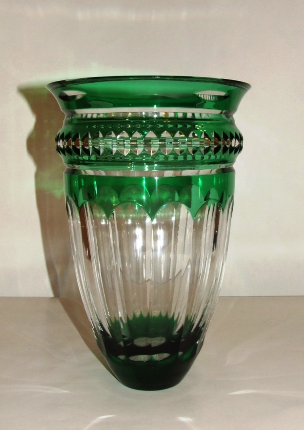 Vase en cristal +24% plomb de couleur vert teinté dans la masse.
