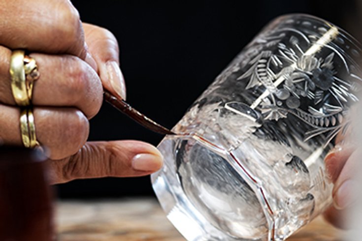 1. Pour ce faire, les peintres appliquent soigneusement le métal précieux sur le cristal. Ici, une ou plusieurs couches sont nécessaires selon le métal & la pièce.