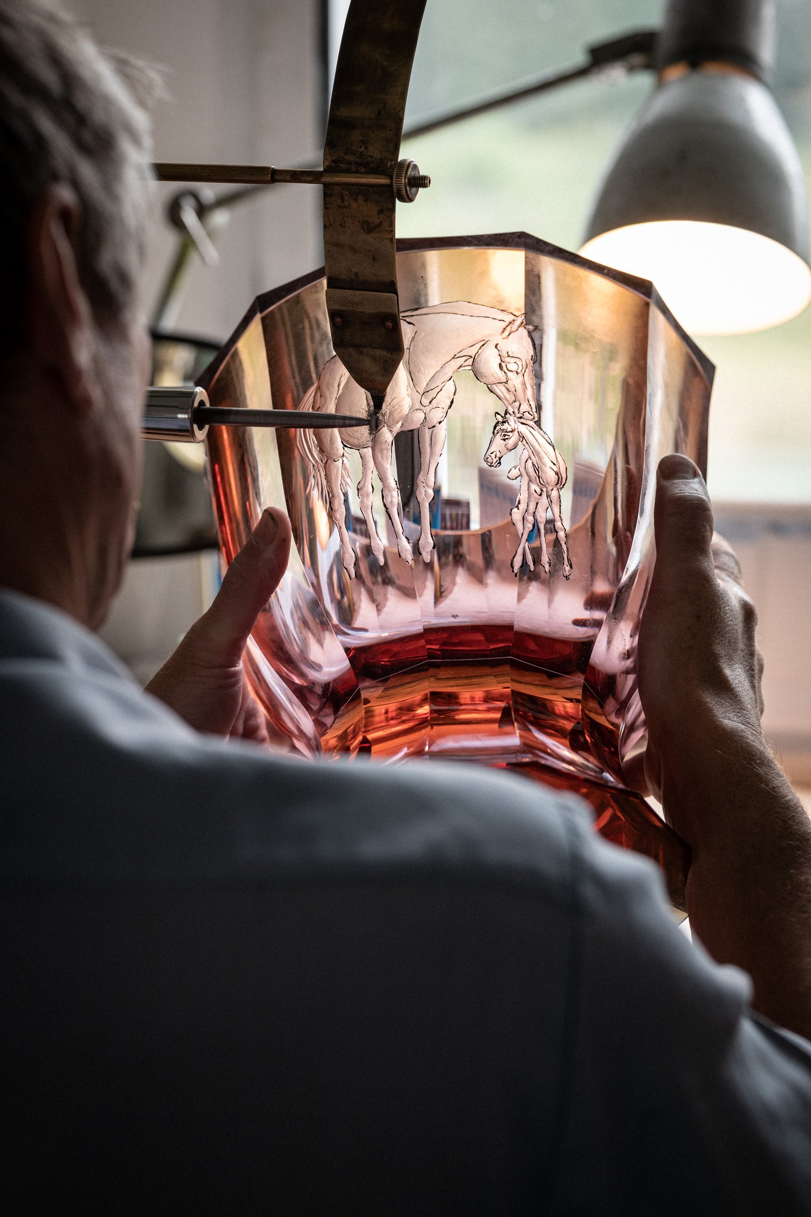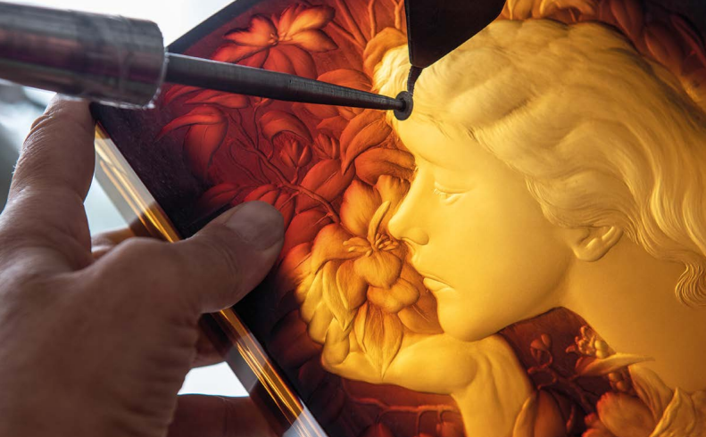 Dans cet art de la gravure, la cristallerie Moser en Bohême s’illustre particulièrement. L’un de ses graveurs s’est d’ailleurs vu nommer “Chevalier de l’Ordre des Arts et des Lettres” en 2020.