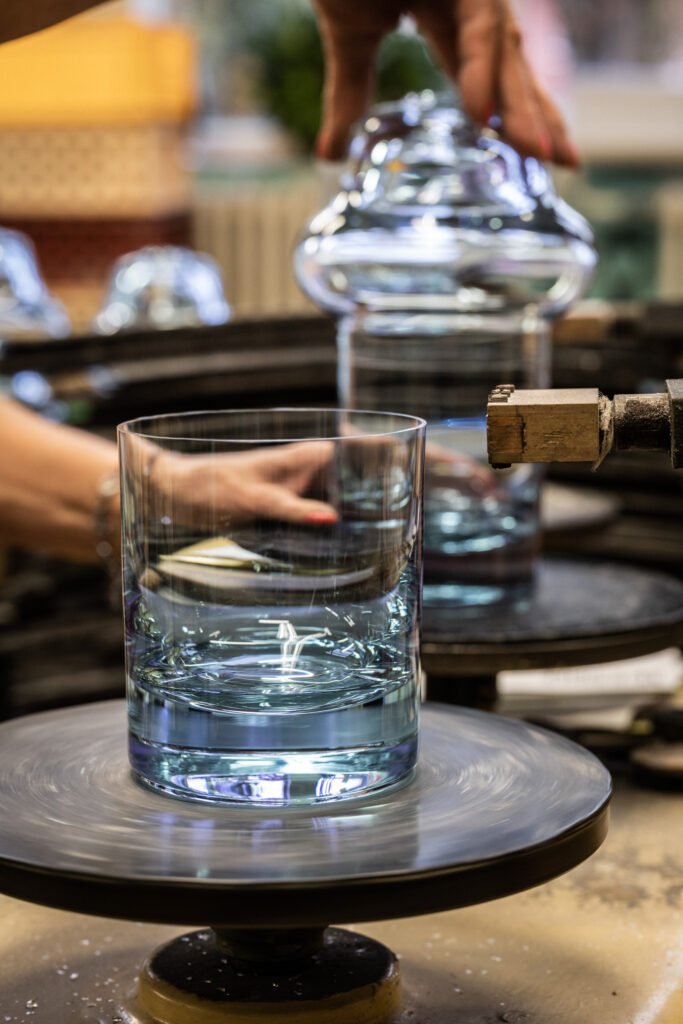 Encore une fois, cette étape n’est pas systématique sur toutes les pièces. Mais dans la cristallerie haut de gamme, il est de coutume d’ajouter des finitions, que ce soit un placage en or 24 carats ou en platine.