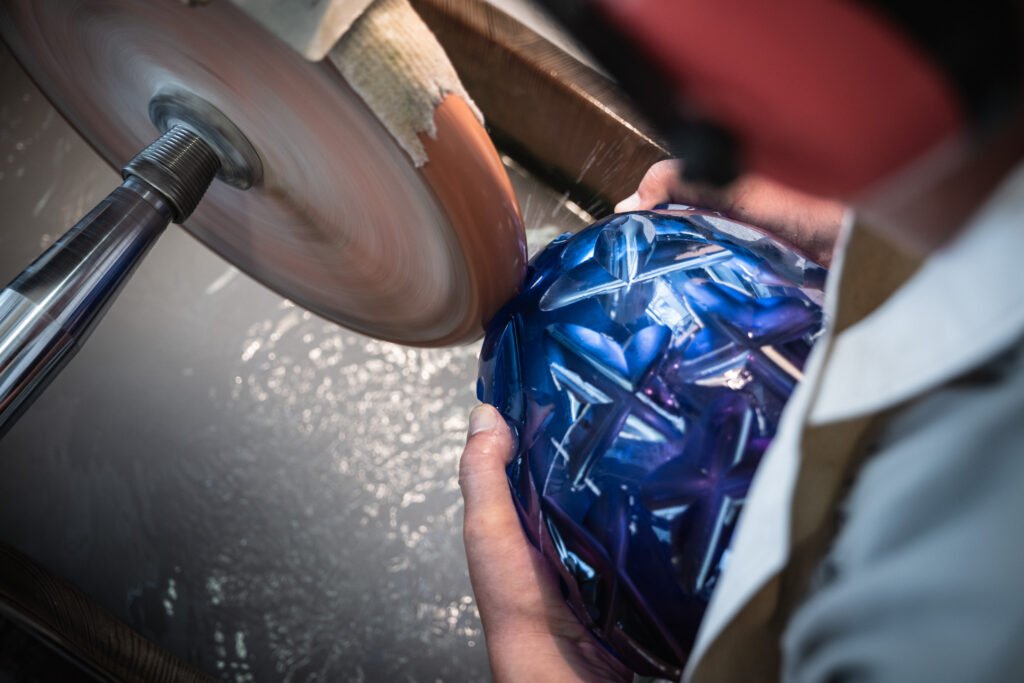 Vient enfin le temps du travail à froid. Là où la pièce en cristal est magnifiée pour prendre son look définitif.