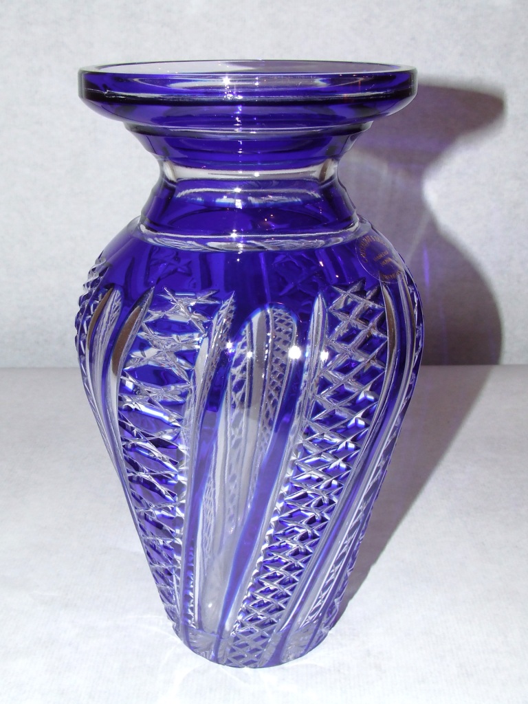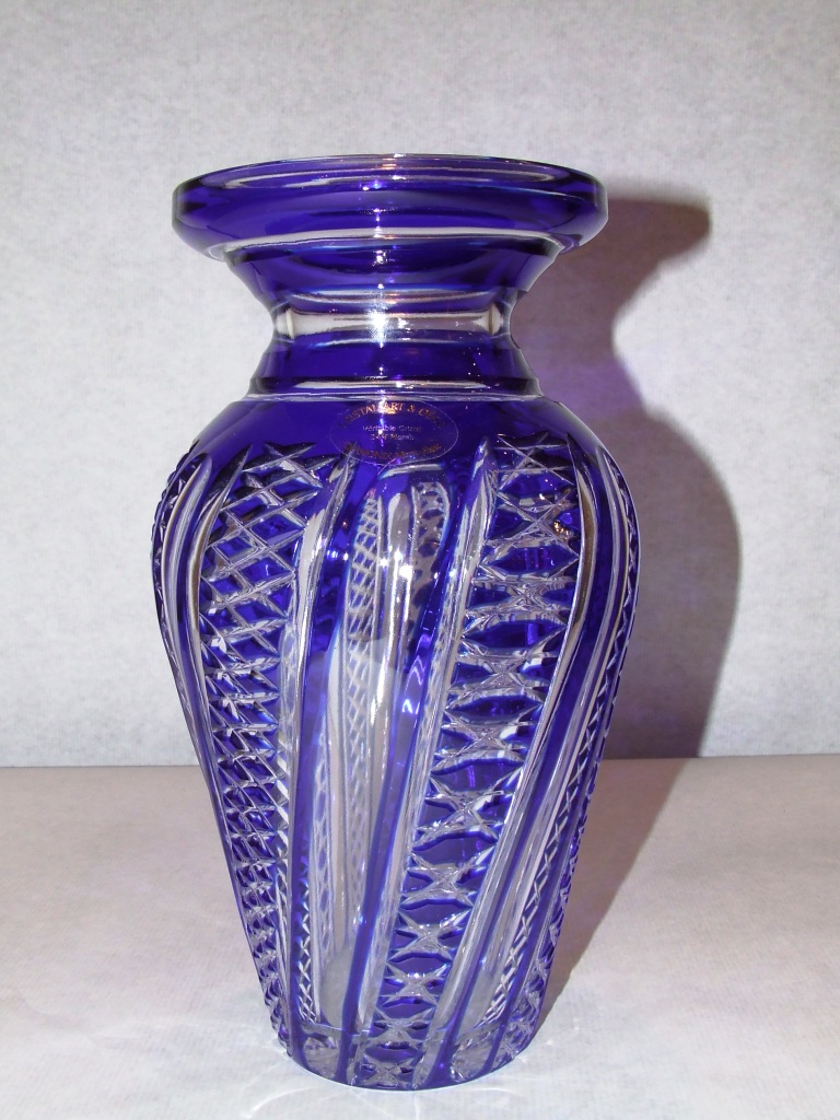 Vase en cristal +24% plomb de couleur bleu teinté dans la masse.