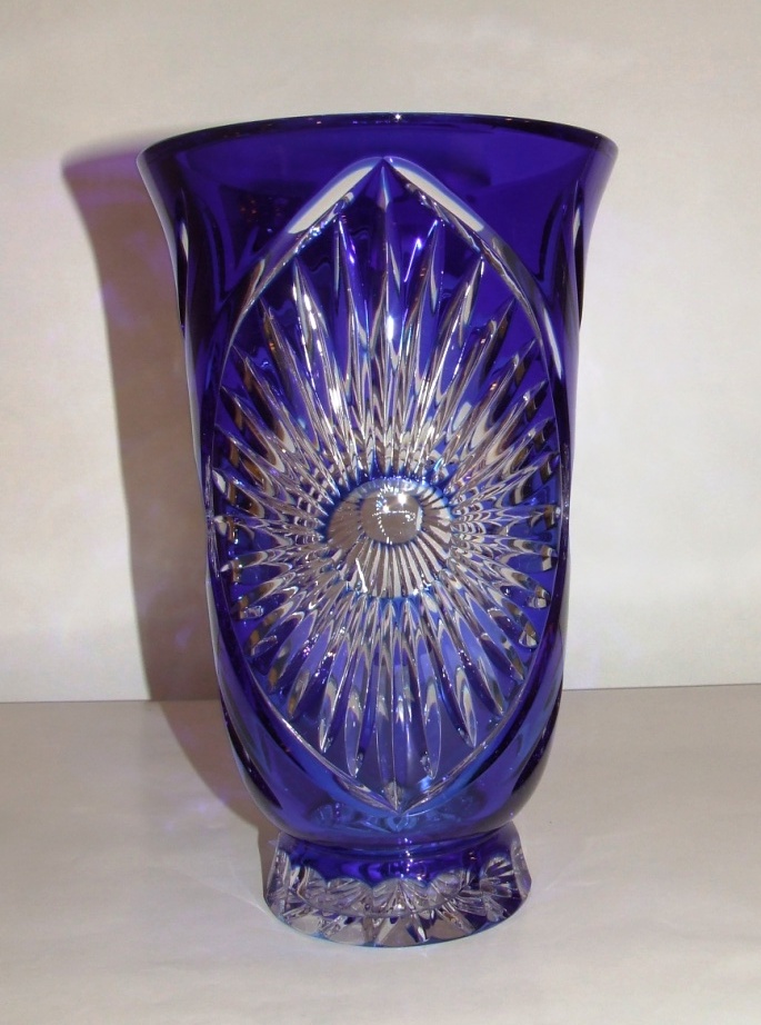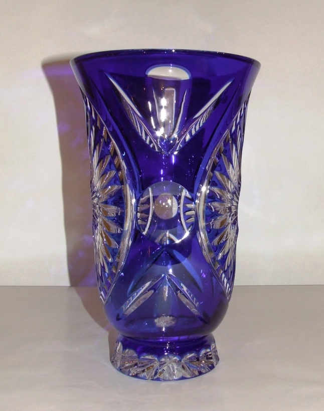 Vase en cristal 24% plomb de couleur bleu teinté dans la masse.