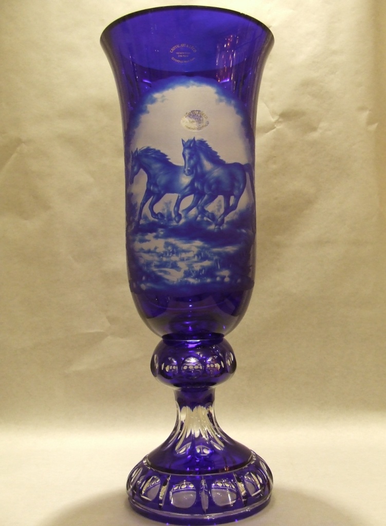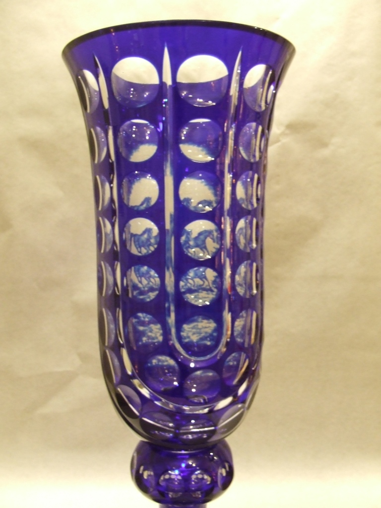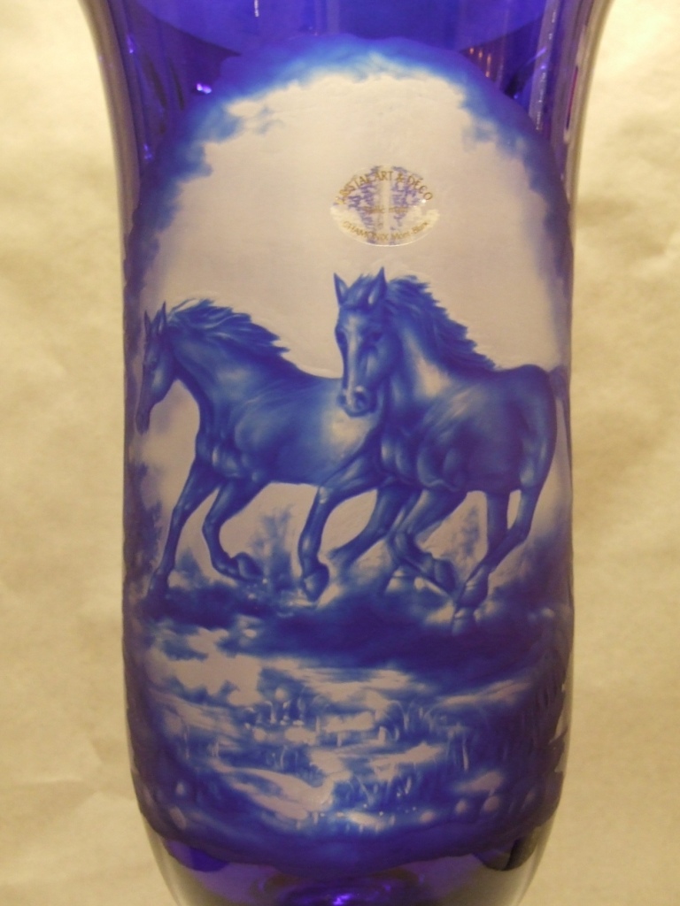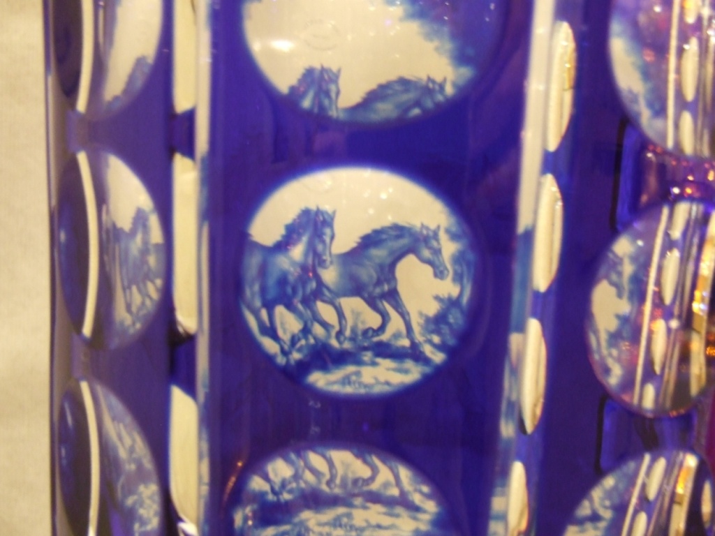 Dans la partie arrière du vase, la taille a été polit et très beau effet de dédoublement des chevaux. (effet de loupe)