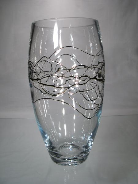 Le filet noir a était déposé par un souffleur de verre sur le vase encore à haute température, pour se fondre à moitié à l'intérieur et à moitié à l' extérieur du vase.